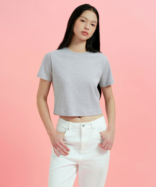 우먼즈 크루 넥 크롭 티셔츠 [미디엄 그레이]
