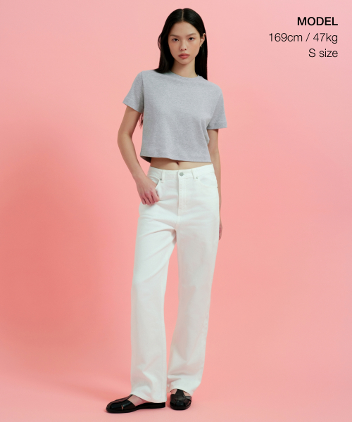 우먼즈 크루 넥 크롭 티셔츠 [화이트]