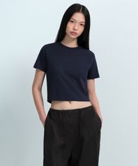 우먼즈 크루 넥 크롭 티셔츠 [다크 네이비]