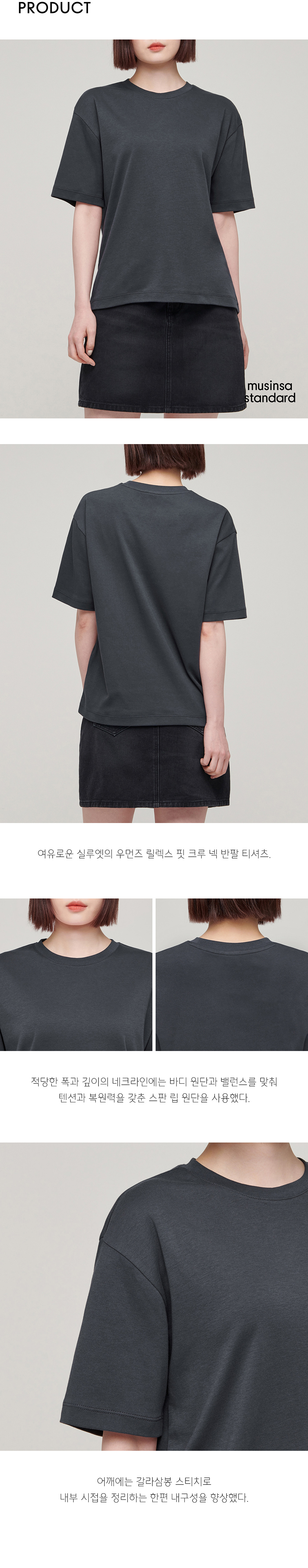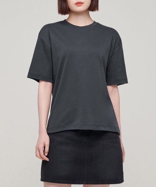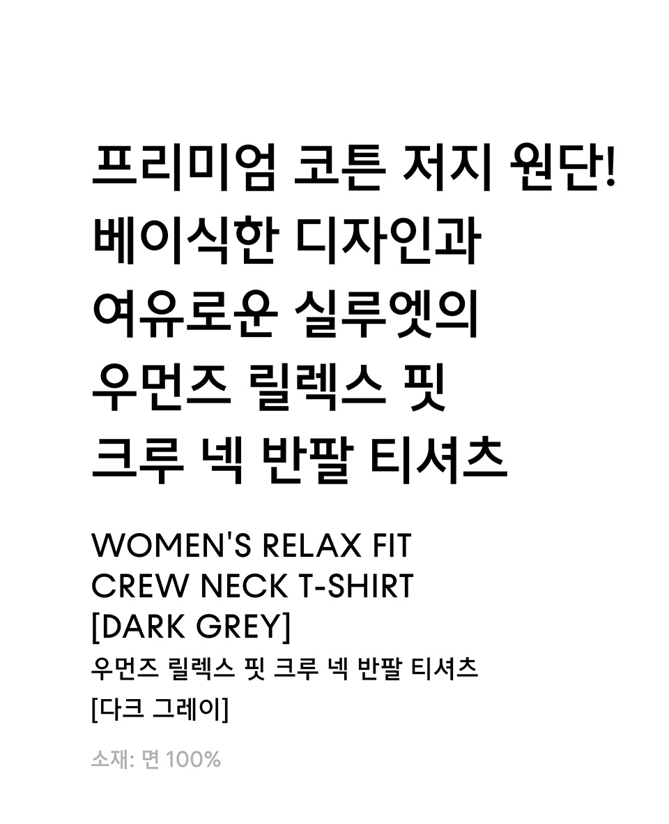 우먼즈 릴렉스 핏 크루 넥 티셔츠 [다크 그레이]