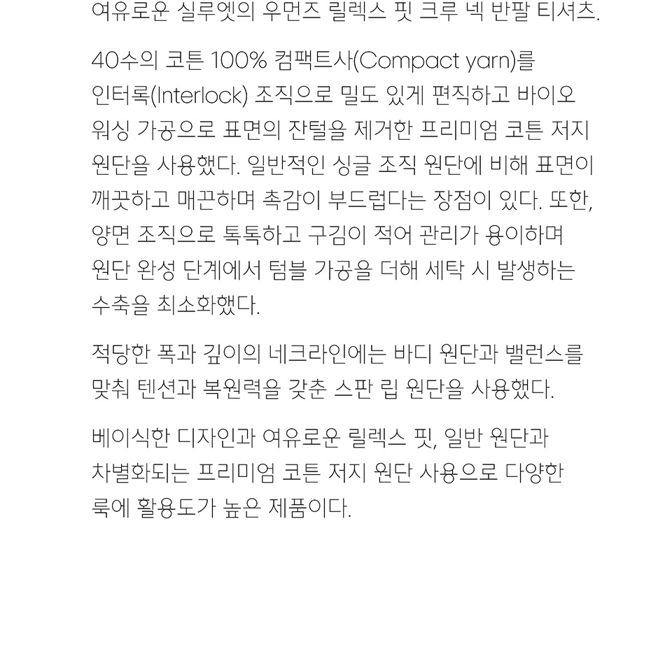 우먼즈 릴렉스 핏 크루 넥 티셔츠 [에크루]