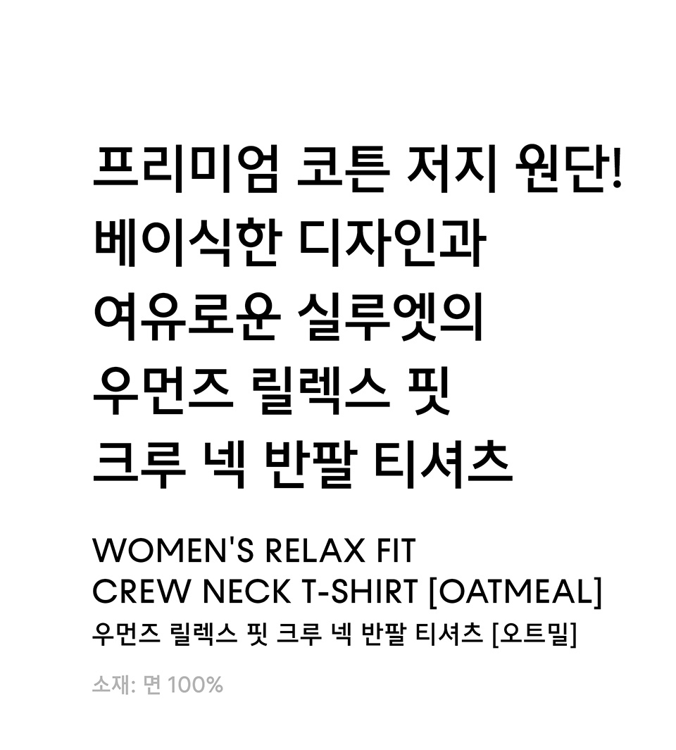 우먼즈 릴렉스 핏 크루 넥 티셔츠 [오트밀]