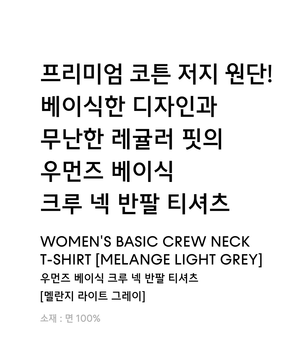 우먼즈 베이식 크루 넥 티셔츠 [멜란지 라이트 그레이]