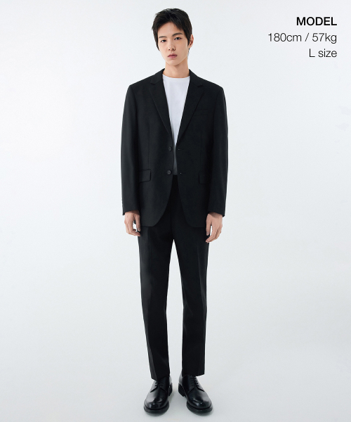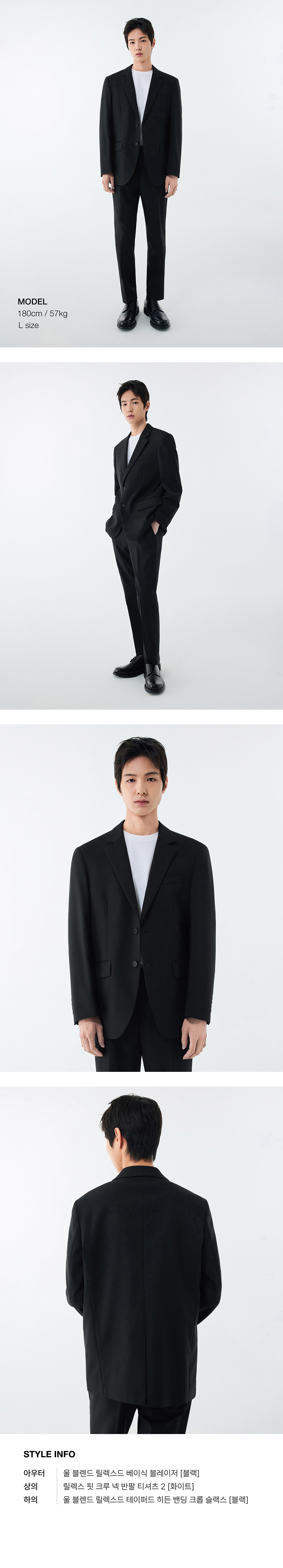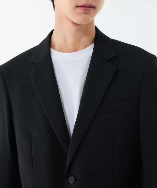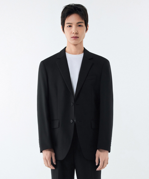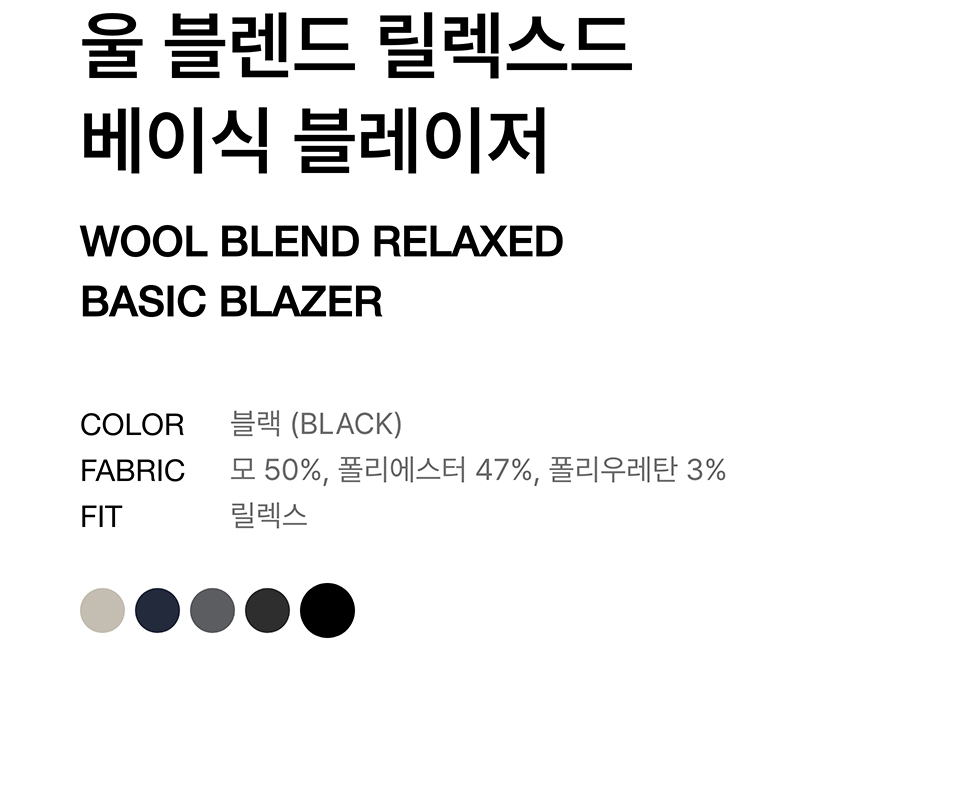 울 블렌드 릴렉스드 베이식 블레이저 [블랙]