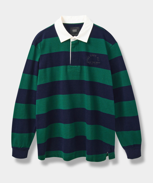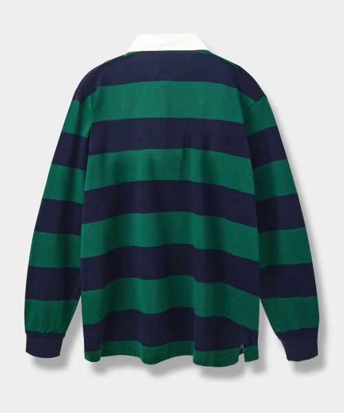 ASI 스트라이프 럭비 맨투맨 티셔츠 그린/네이비