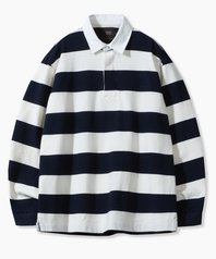 ASI 스트라이프 럭비 맨투맨 티셔츠_네이비&화이트