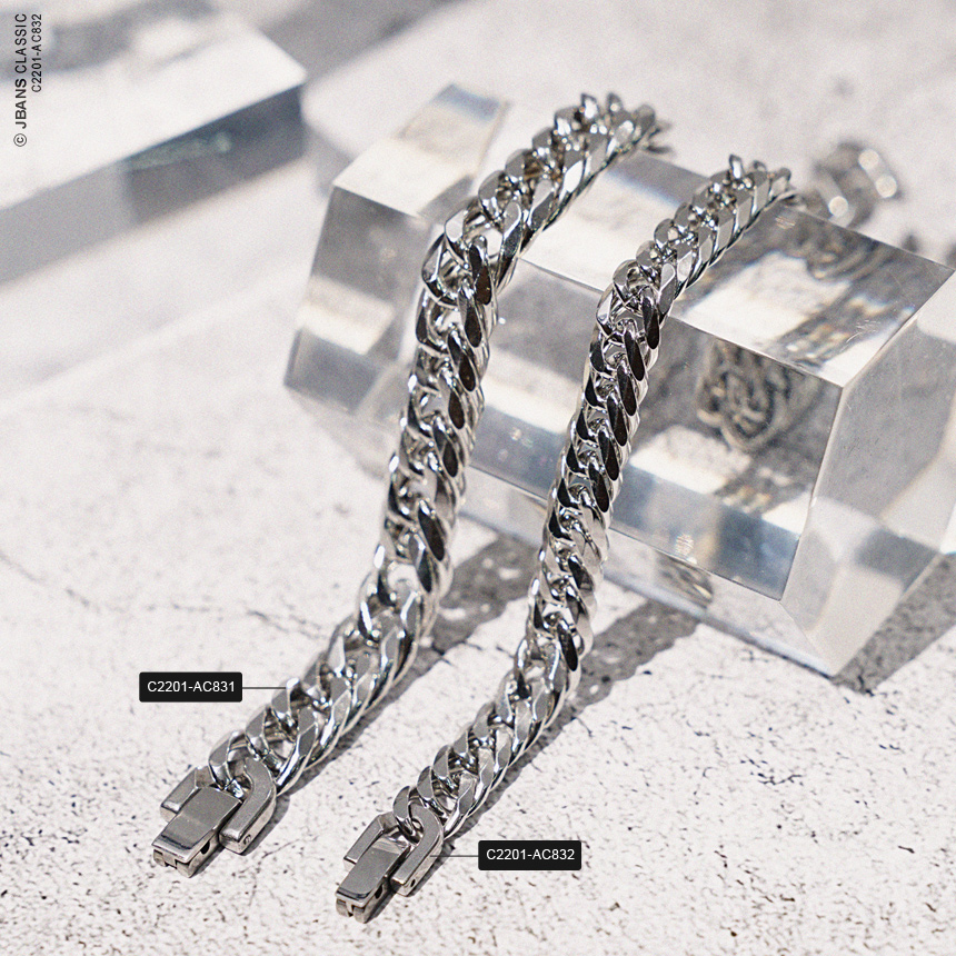 - 써지컬스틸로 만들어진 체인과 고급 버클장식을 사용해 변색이나 트러블 걱정을 줄였습니다.