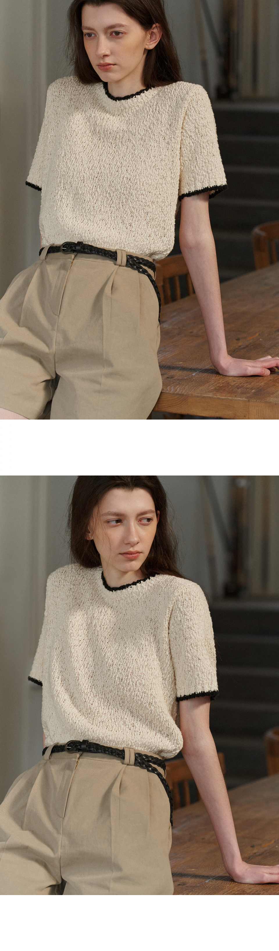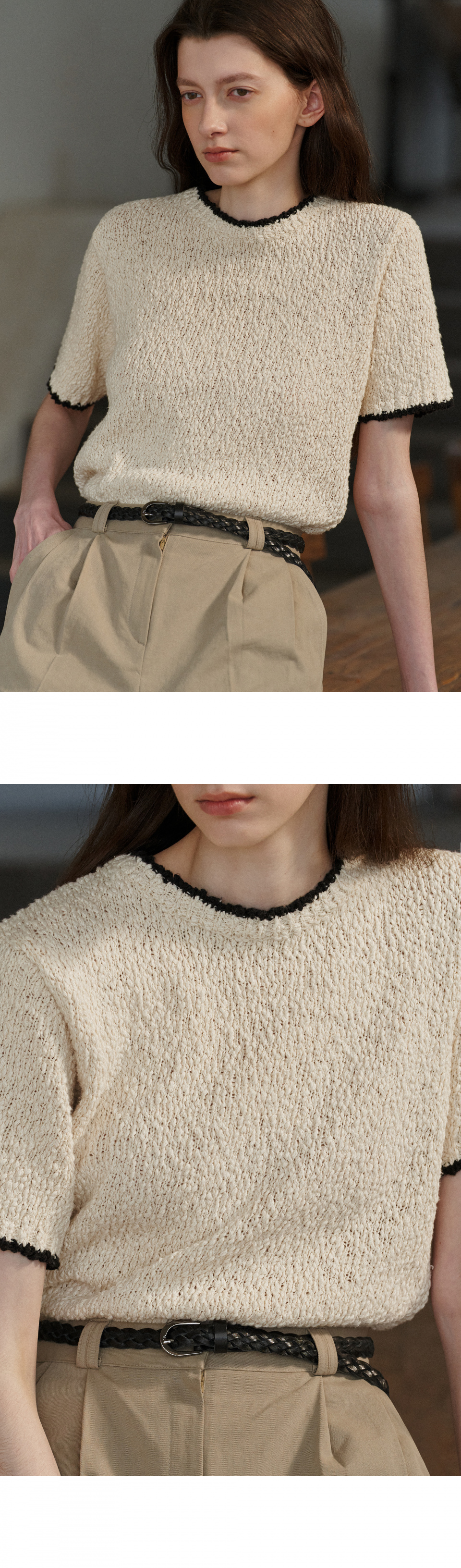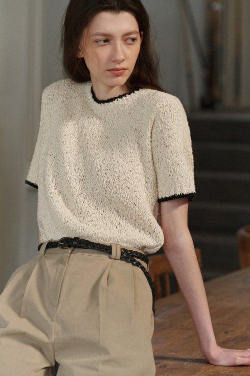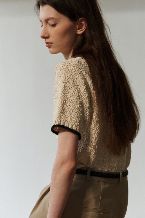 Pansy half sleeve knit (ivory)