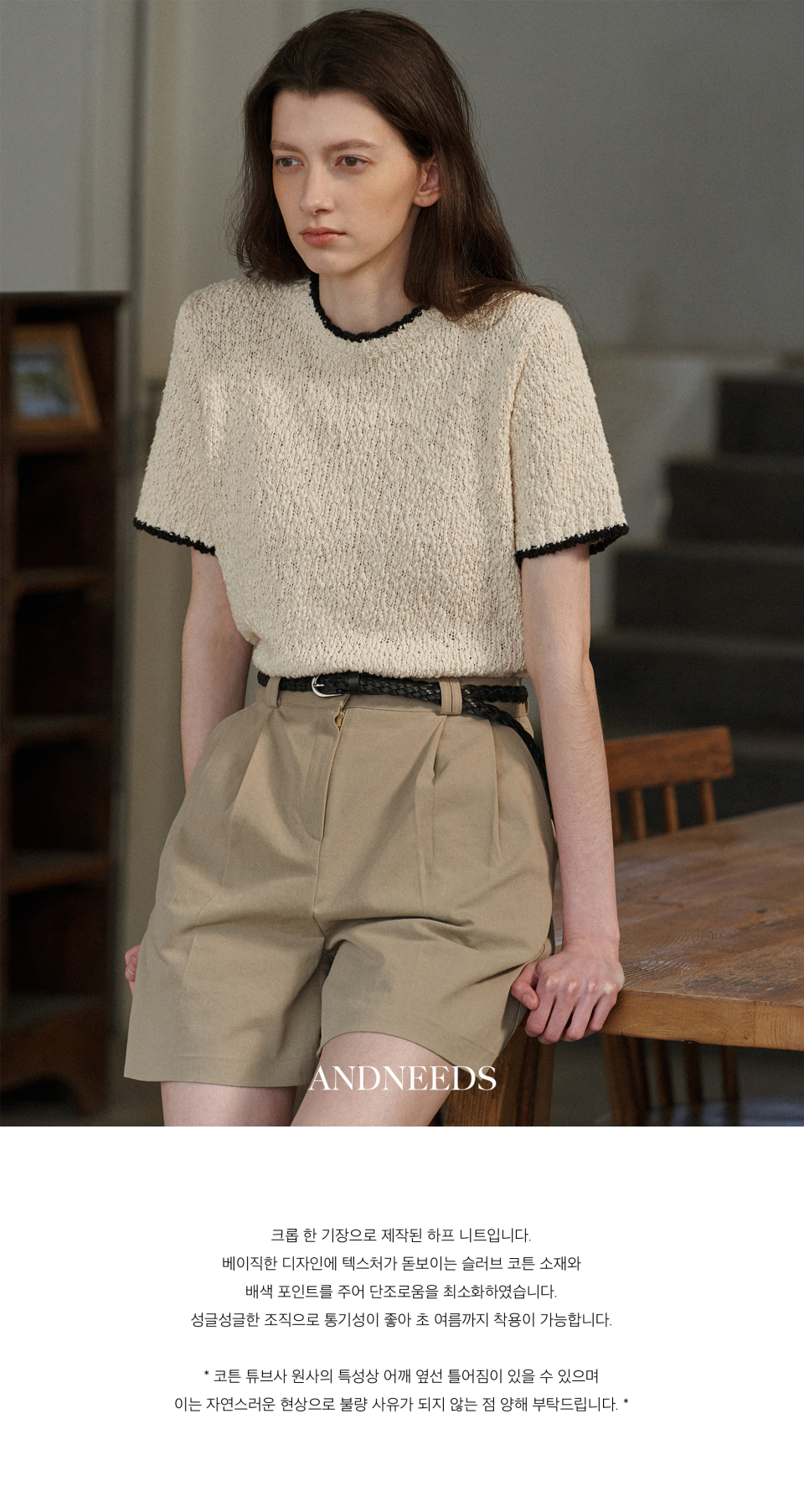 앤니즈(ANDNEEDS)는 유연한 실루엣과 위트 있는 디테일이 공존하는 에센셜 웨어를 선보이는 브랜드입니다. 모든 것의 조화로움을 지향하며, 사람들의 다양한 니즈를 함께 이야기하고 나누고 싶은 마음을 담아 제작합니다.