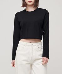 우먼즈 크루 넥 크롭 긴소매 티셔츠 [블랙]