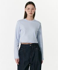 우먼즈 크루 넥 크롭 긴소매 티셔츠 [파스텔 블루]
