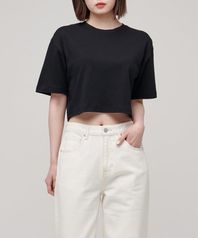 우먼즈 릴렉스 핏 크루 넥 크롭 티셔츠 [블랙]