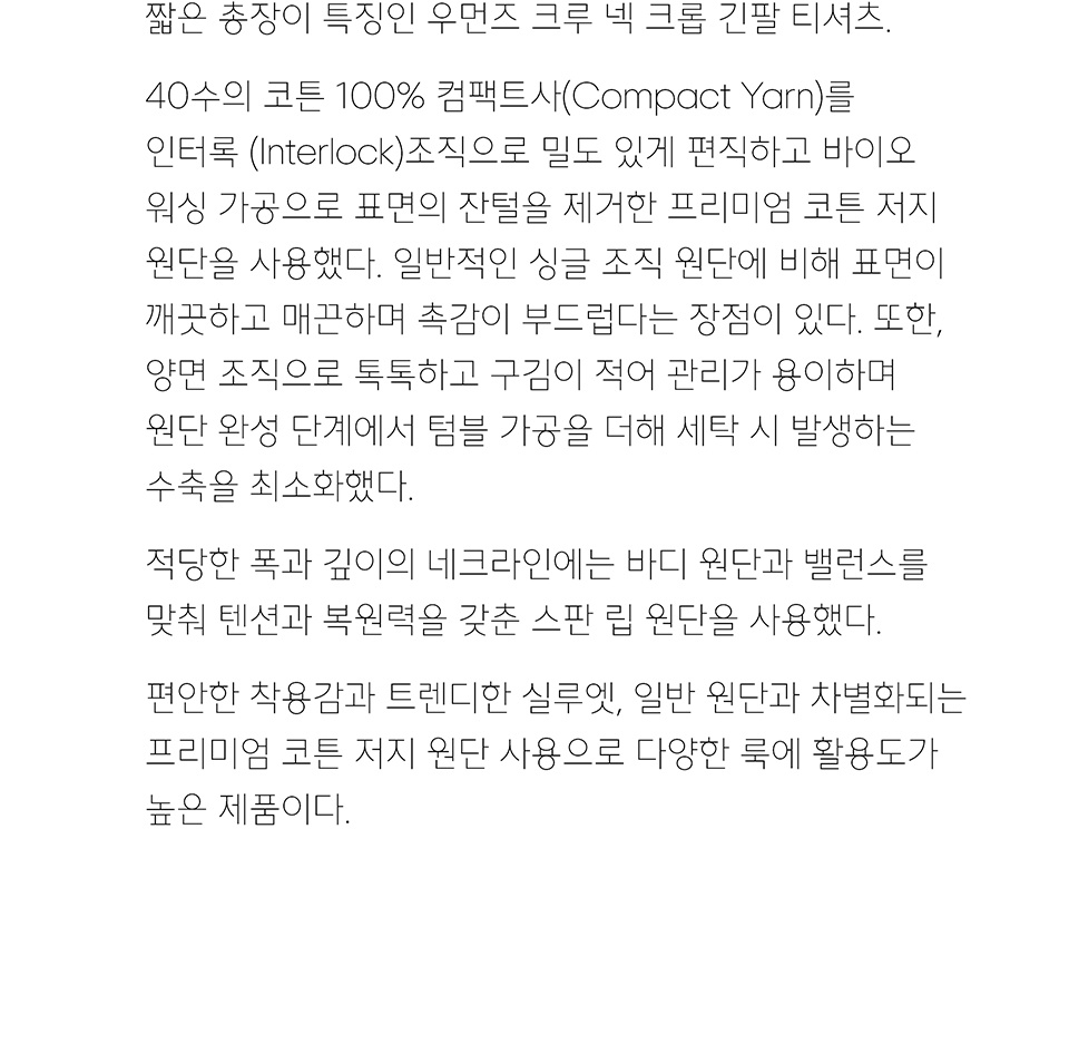 우먼즈 크루 넥 크롭 긴소매 티셔츠 [크림]