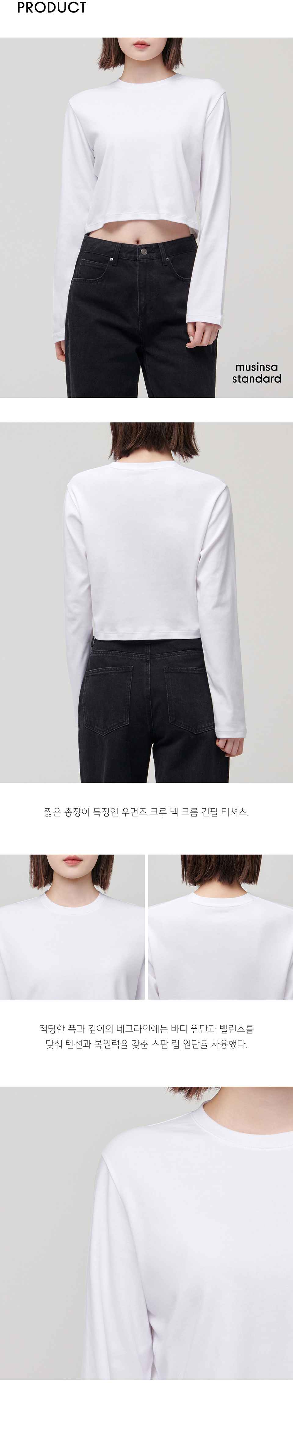 우먼즈 크루 넥 크롭 긴소매 티셔츠 [화이트]