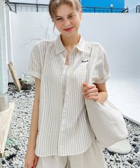 Natural pinstripe Short-Sleveve Shirt - Beige