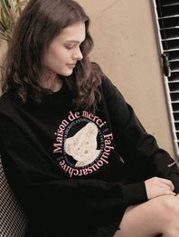 우먼즈 크롭 서클로고 엠보 베어프렌즈 헤비테리 맨투맨 블랙핑크(FCD3TS702W)
