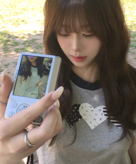 Heart Printed Cotton Ragian T-shirt Gray-Navy