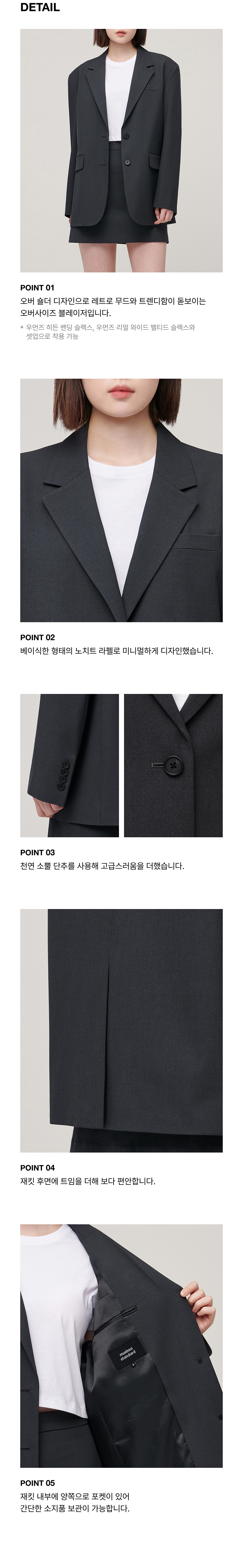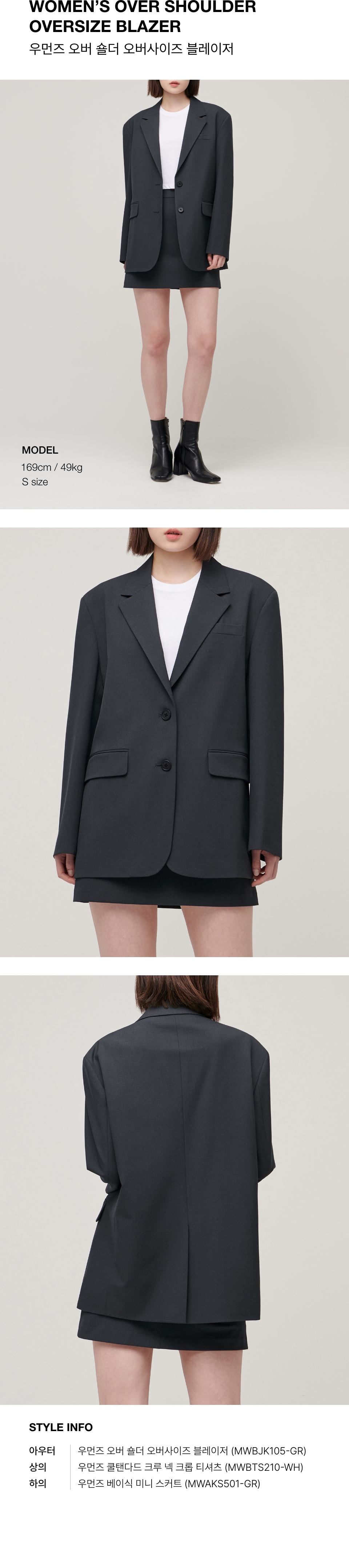 우먼즈 오버 숄더 오버사이즈 블레이저 [그레이]