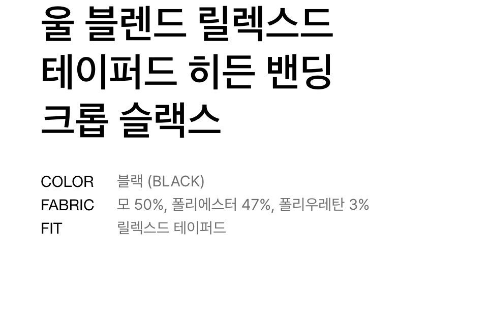 울 블렌드 세미 와이드 히든 밴딩 슬랙스 [블랙]