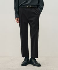 울 블렌드 릴렉스드 테이퍼드 히든 밴딩 크롭 슬랙스 [블랙]