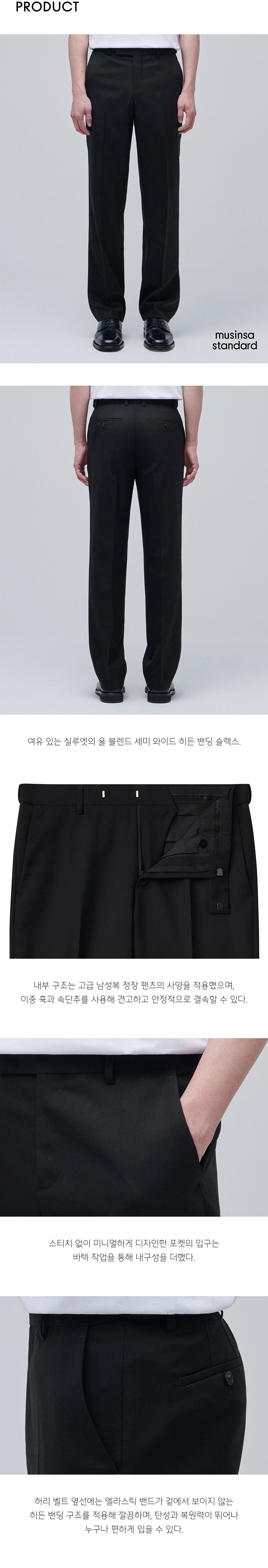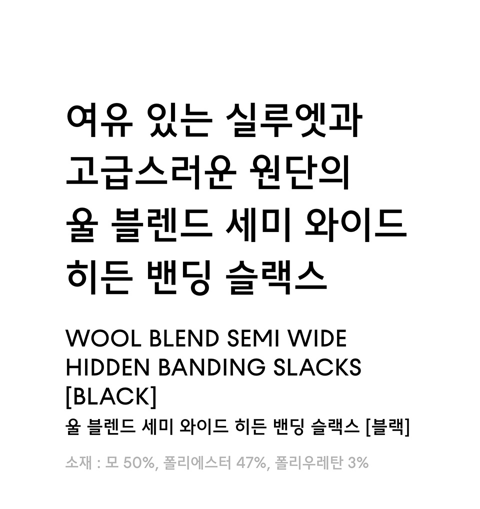 울 블렌드 세미 와이드 히든 밴딩 슬랙스 [블랙]