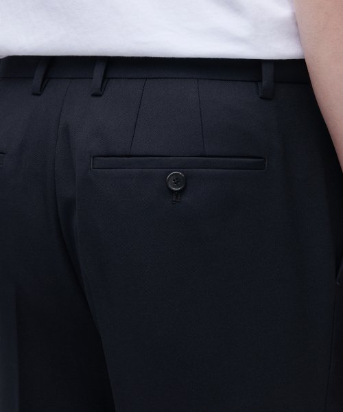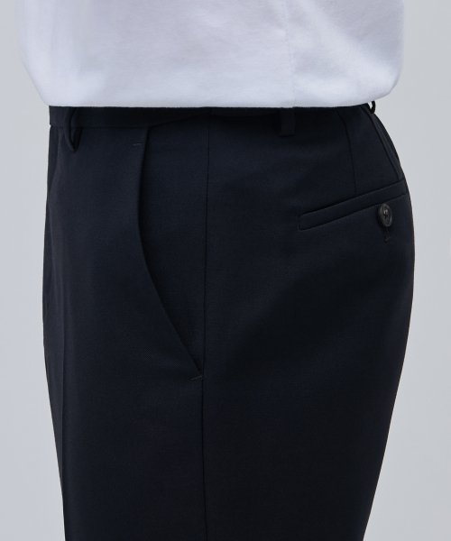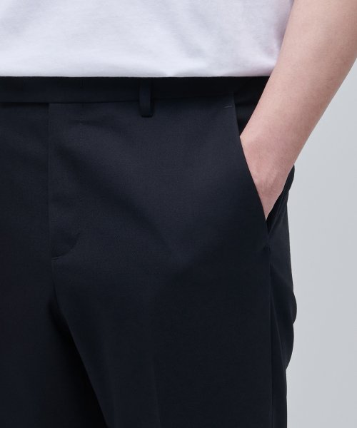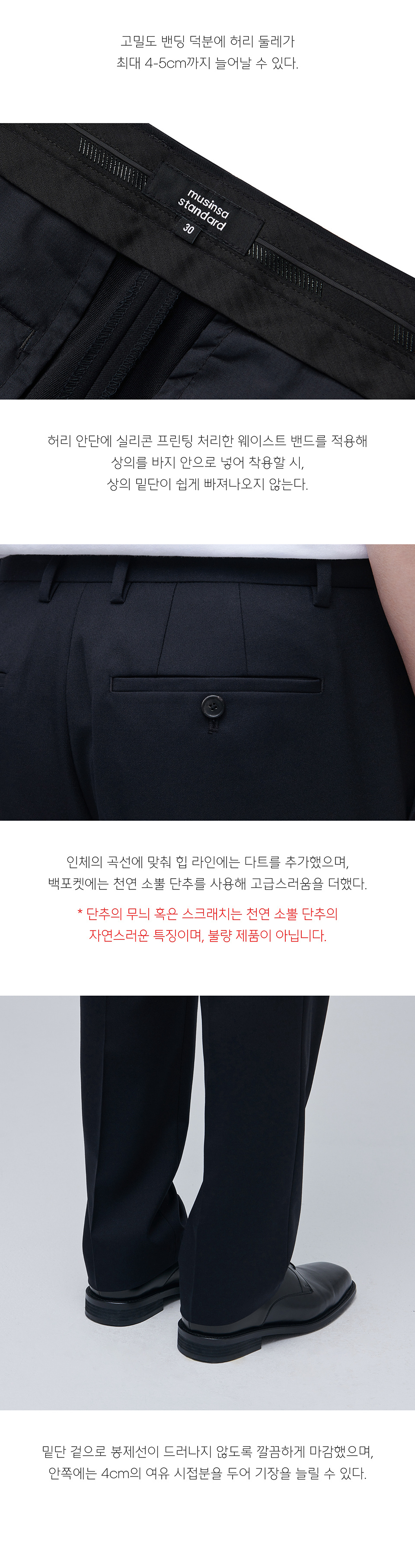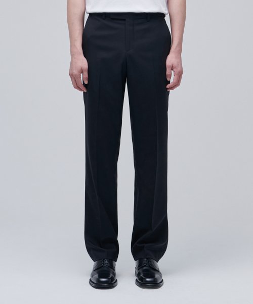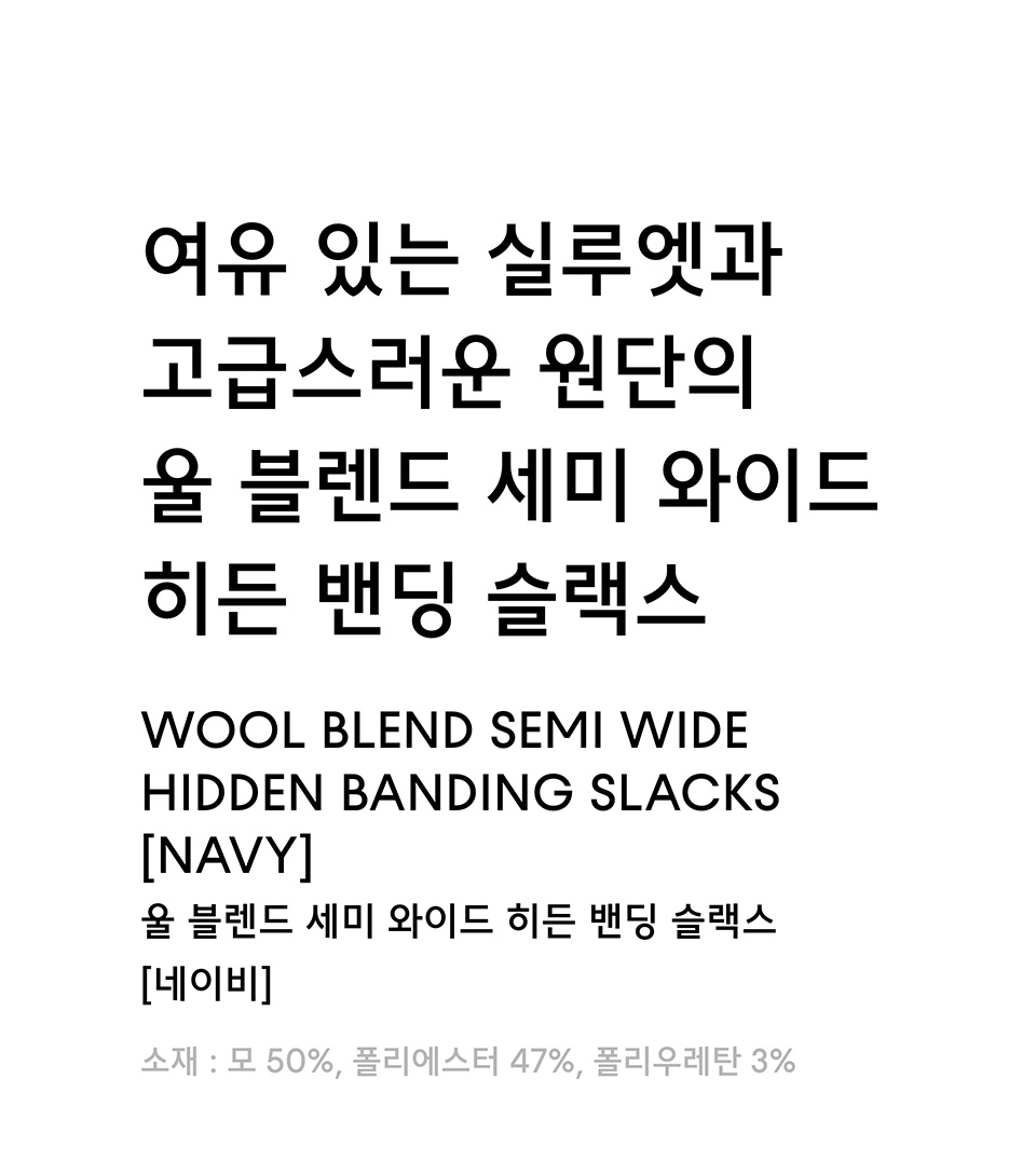 울 블렌드 세미 와이드 히든 밴딩 슬랙스 [네이비]