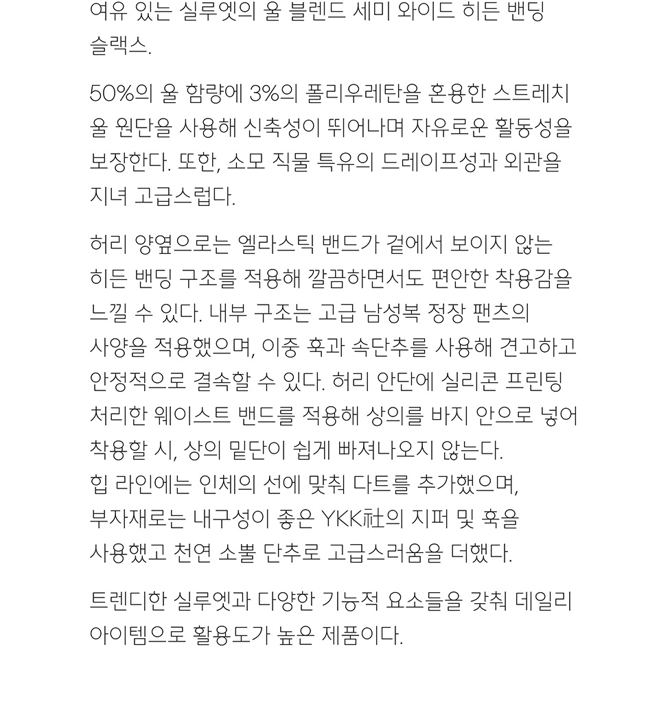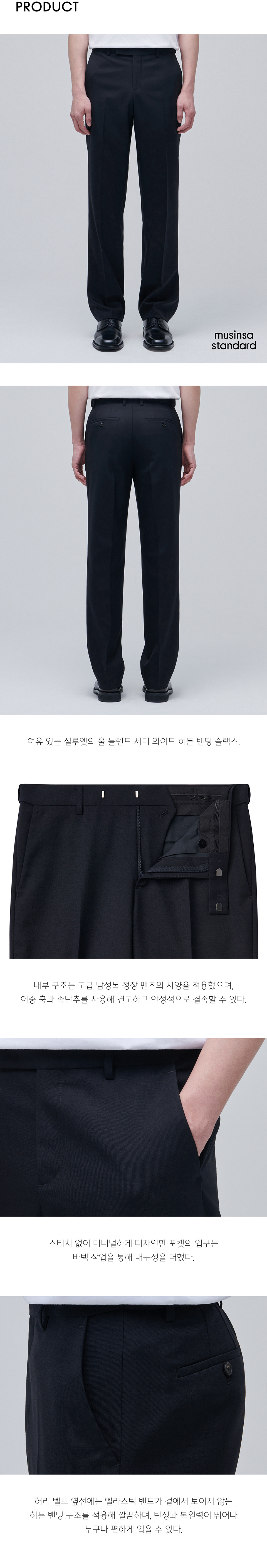울 블렌드 세미 와이드 히든 밴딩 슬랙스 [블랙]