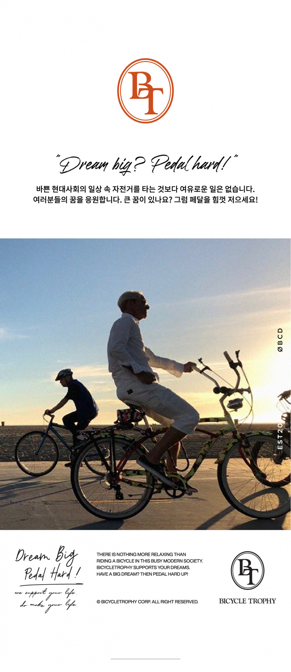 바이시클트로피(BICYCLETROPHY)는 '자전거 기념품'이라는 뜻으로 잊혀져가는 자전거에 관한 스토리를 담은 기념품을 만듭니다. 핸드메이드 작업으로 다양한 생활 잡화를 만들고 있으며, 클래식하면서도 트렌디한 감성을 전달합니다.