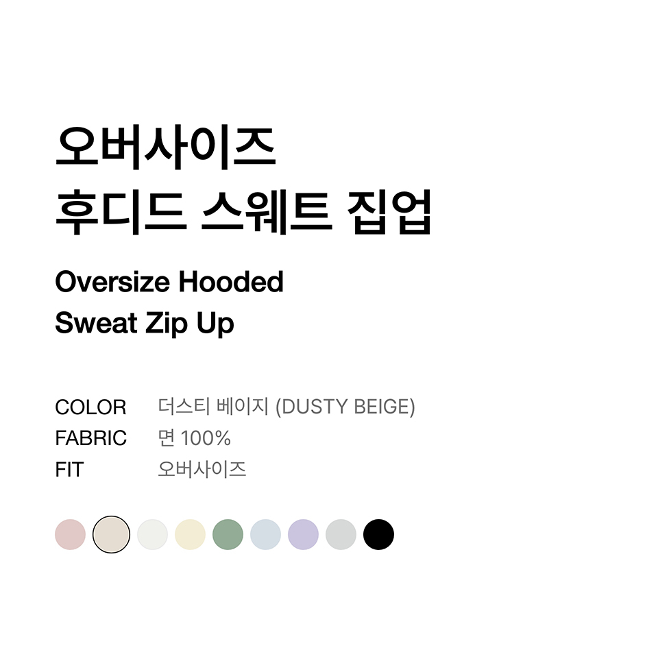 오버사이즈 후디드 스웨트 집업 [더스티 베이지]