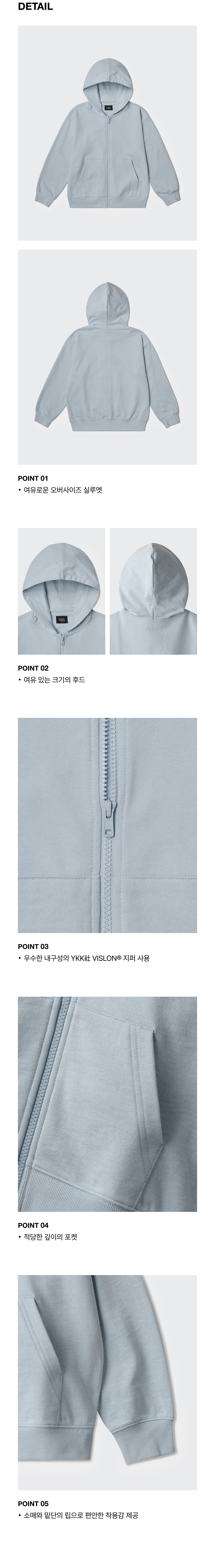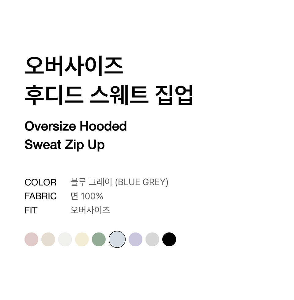 오버사이즈 후디드 스웨트 집업 [블루 그레이]