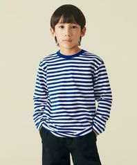 스트라이프 크루 넥 긴소매 티셔츠 [블루/화이트]