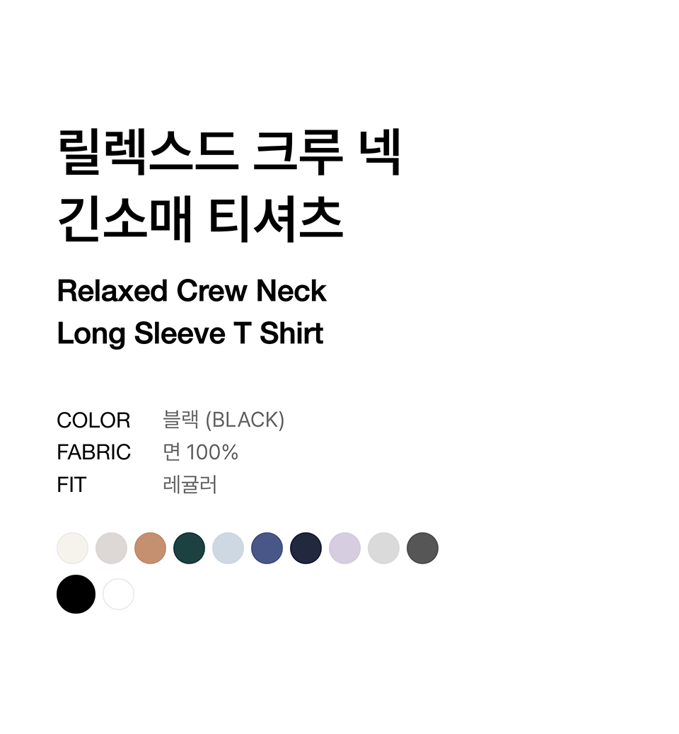 릴렉스드 크루 넥 긴소매 티셔츠 [블랙]