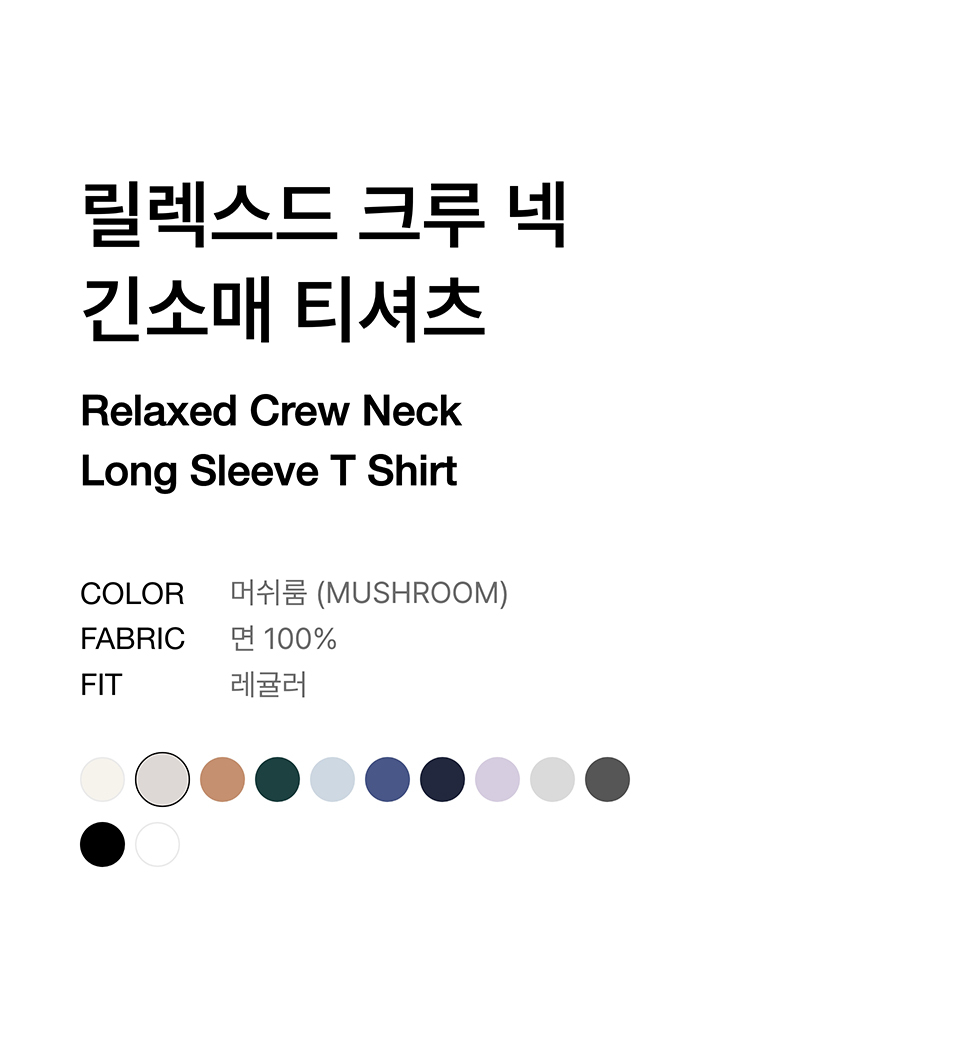 릴렉스드 크루 넥 긴소매 티셔츠 [머쉬룸]