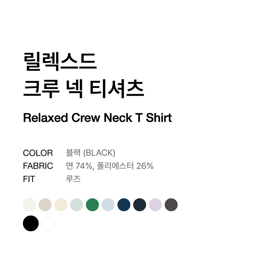 릴렉스드 크루 넥 티셔츠 [블랙]