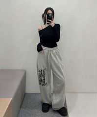 씨알에스디엘 레터링 와이드 밴딩 팬츠