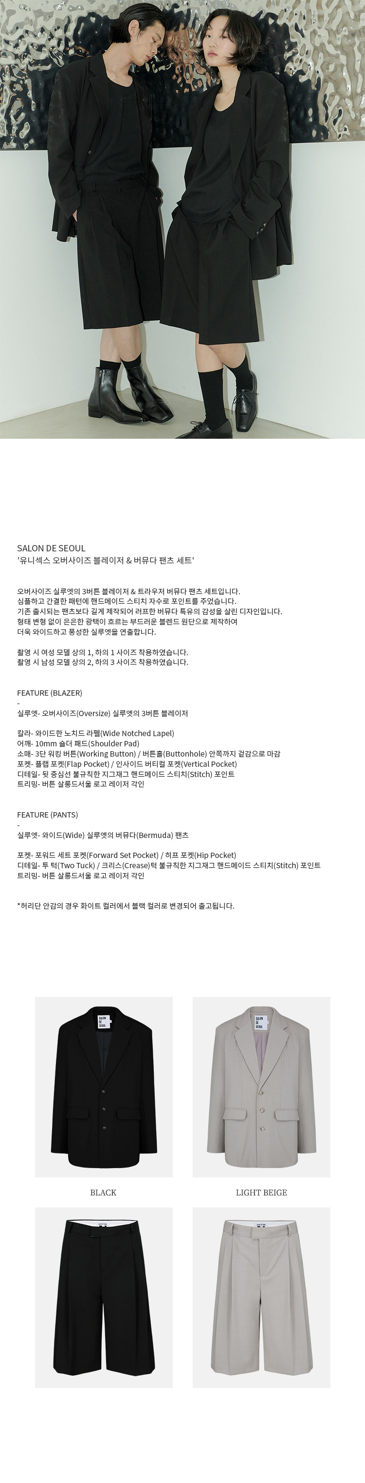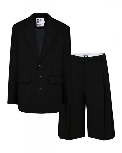 유니섹스 오버사이즈 블레이저 & 버뮤다 팬츠 세트 - 블랙
