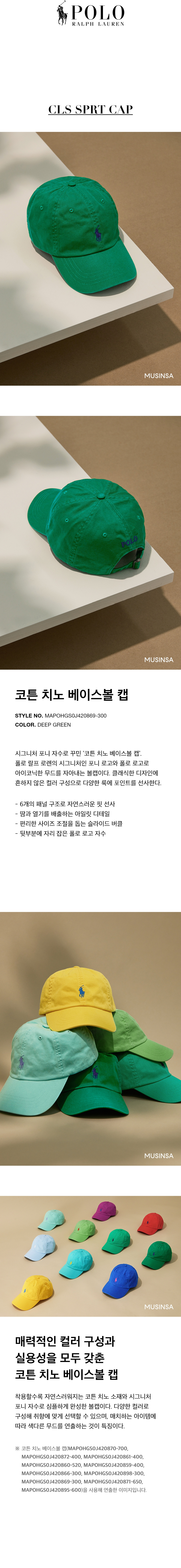 코튼 치노 베이스볼 캡 - 딥 그린