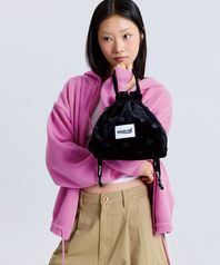 HEART VELVET STRING POUCH BAG BLACK