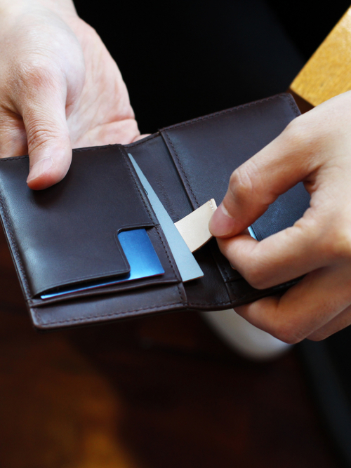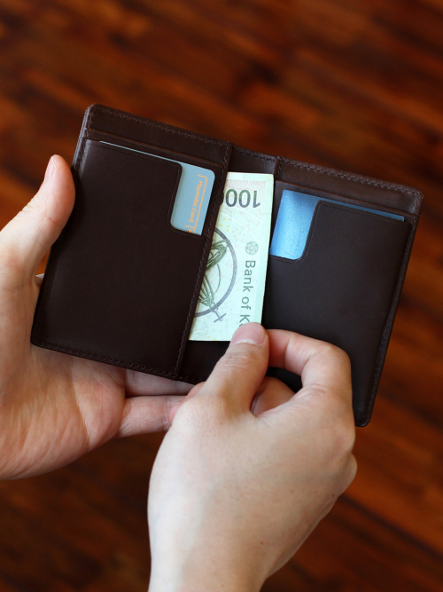 Slim&Small (슬림앤스몰 손잡이 가죽 반지갑) - 다크브라운