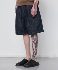 슬랍 워싱 원턱 데님 쇼츠 (BLUE)
