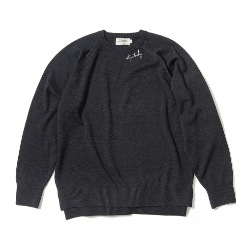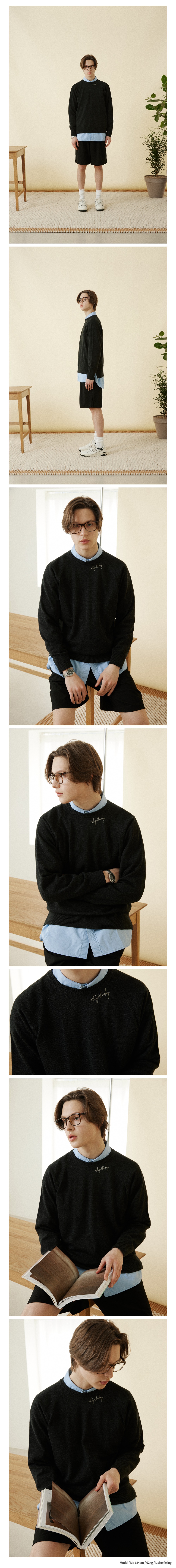 [Essential] Wool Blended Unblance Round Knit_Charcoal