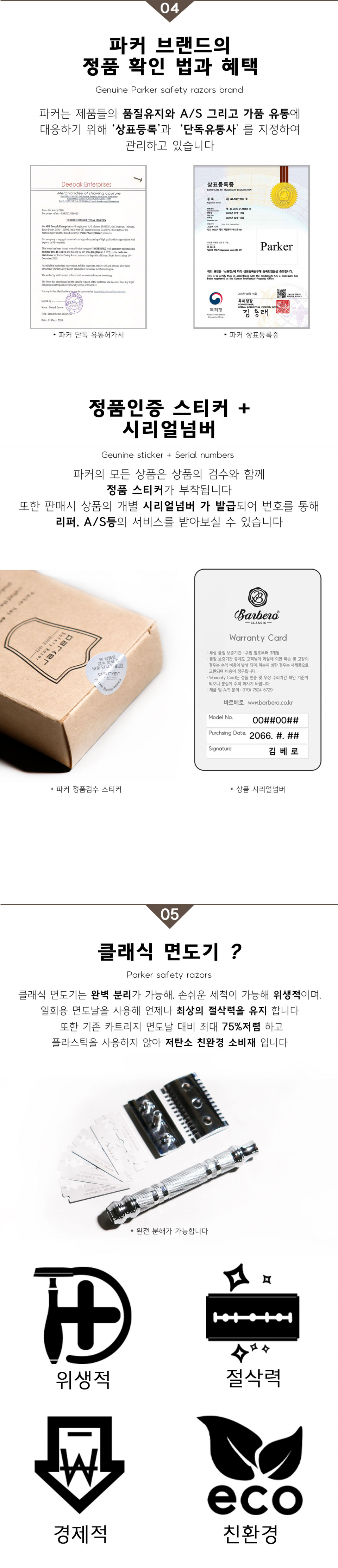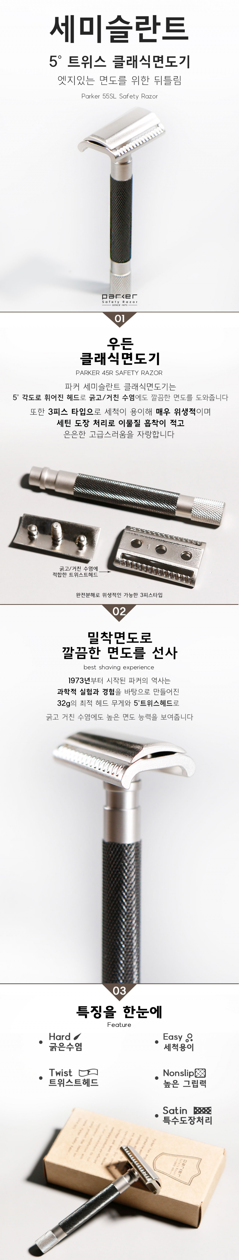 파커(PARKER)는 1973년부터 현재까지 반세기 넘게 프리미엄 클래식 면도기의 명성을 지켜온 브랜드입니다. 파커의 안전면도기 상품은 수작업으로 생산되어 클래식 면도기의 가치를 높이며, 광범위한 엔지니어링 및 품질 테스트 과정을 거칩니다. 고객의 니즈를 최우선시하는 파커의 혁신성과 우수성은 높은 평가를 받고 있습니다.