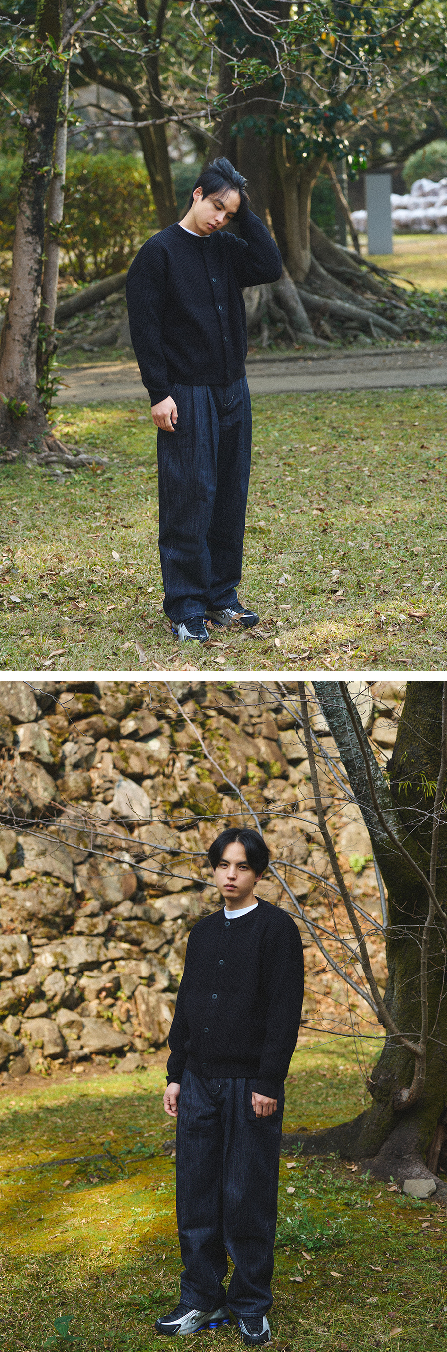 Clean Denim Deep Two Tuck Vertical Pants [Black]
