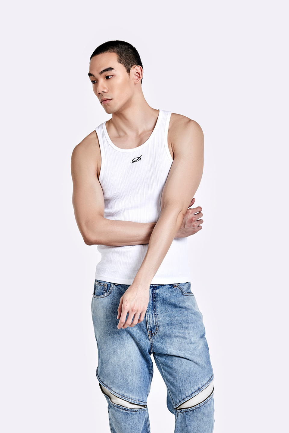 Irregular Logo embroidery Logo Sleeveless - White