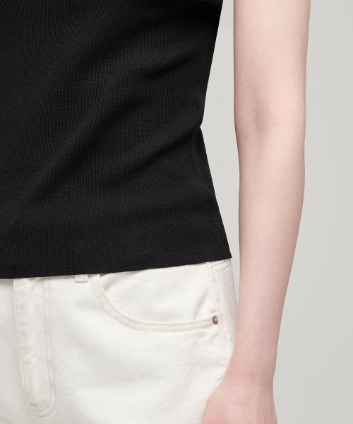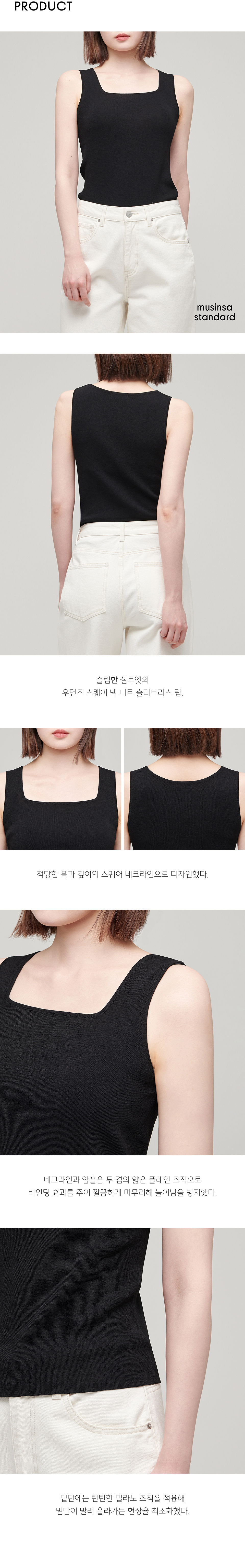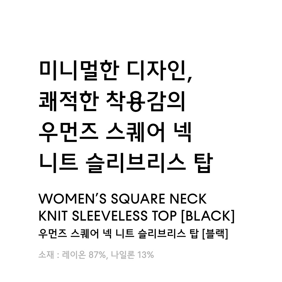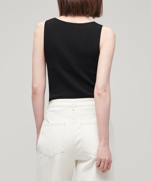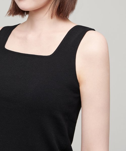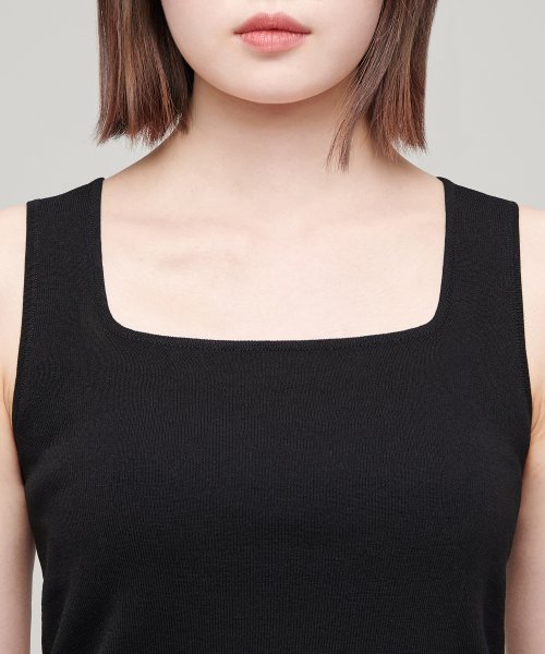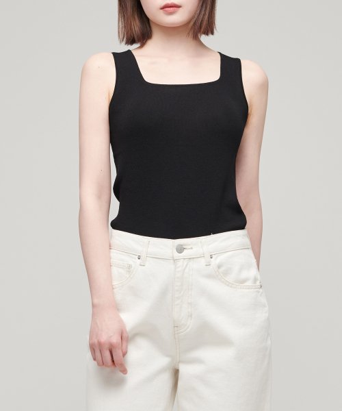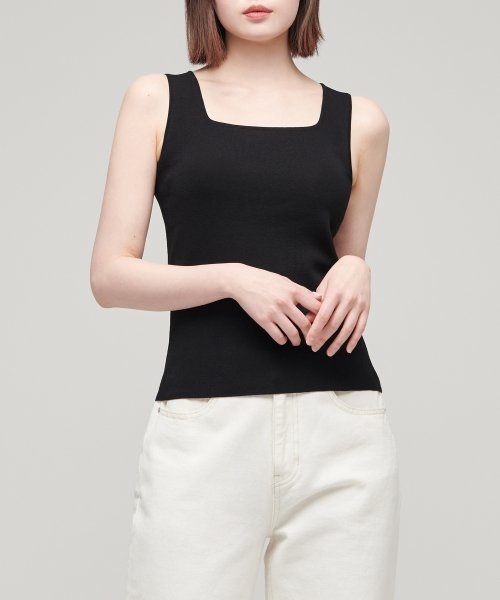 우먼즈 스퀘어 넥 니트 슬리브리스 탑 [블랙]