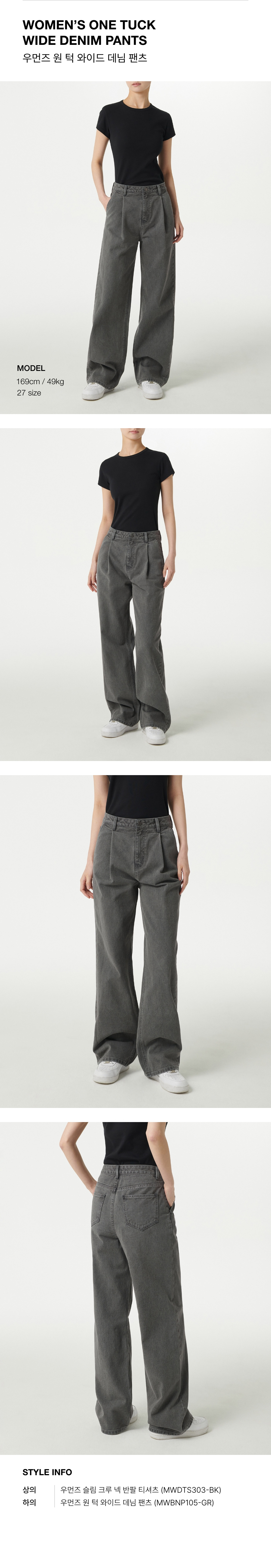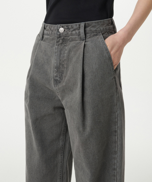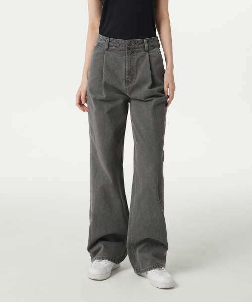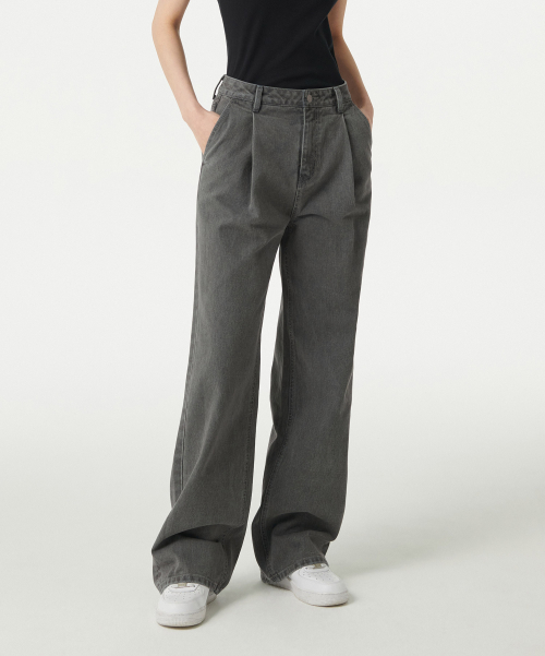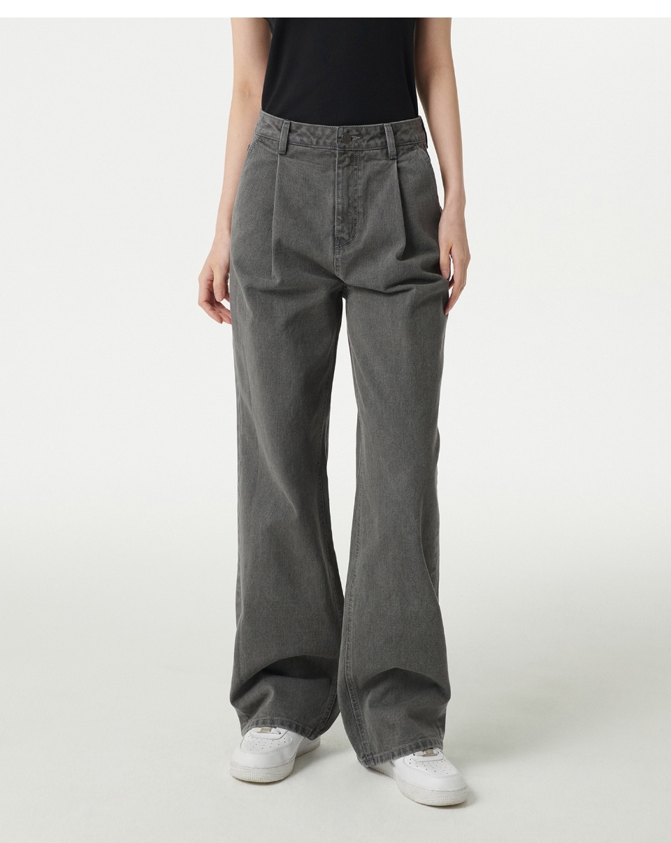 우먼즈 원 턱 와이드 데님 팬츠 [그레이]