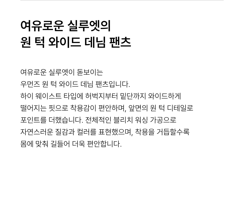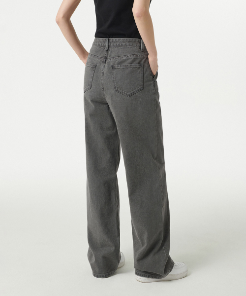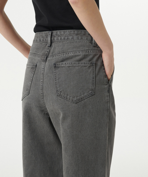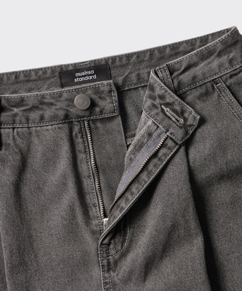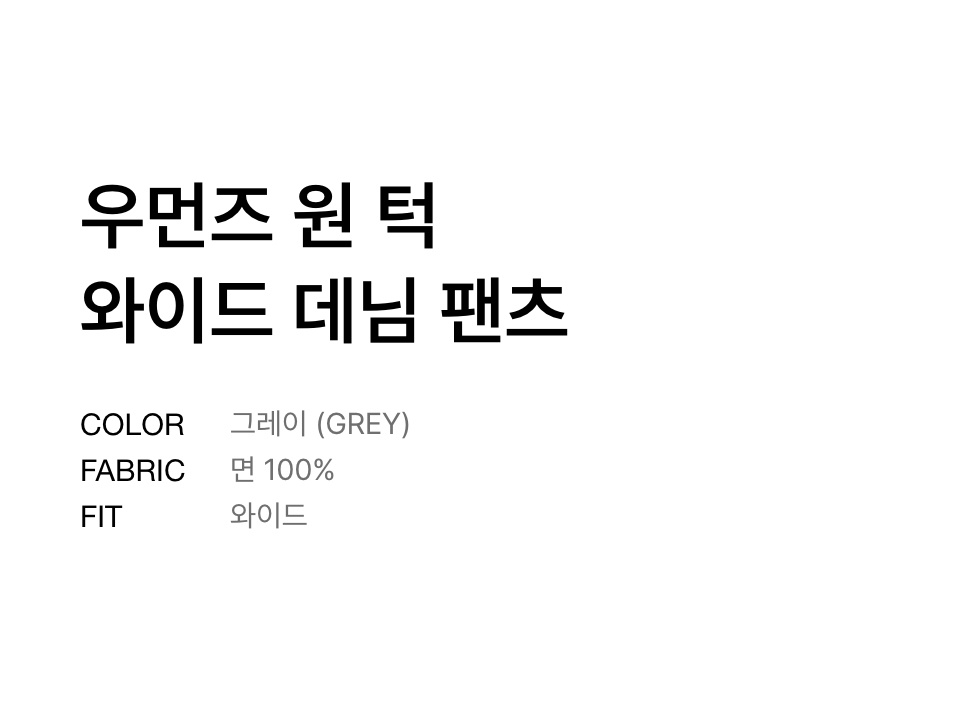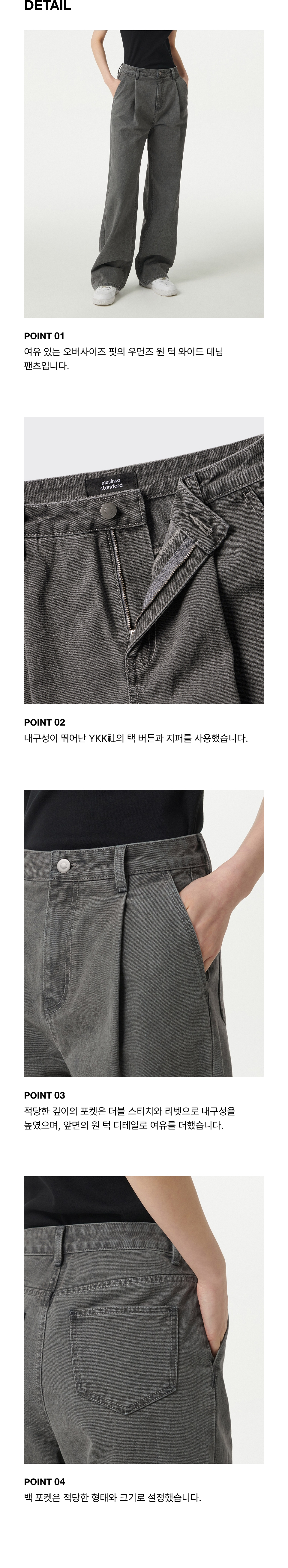 우먼즈 원 턱 와이드 데님 팬츠 [그레이]