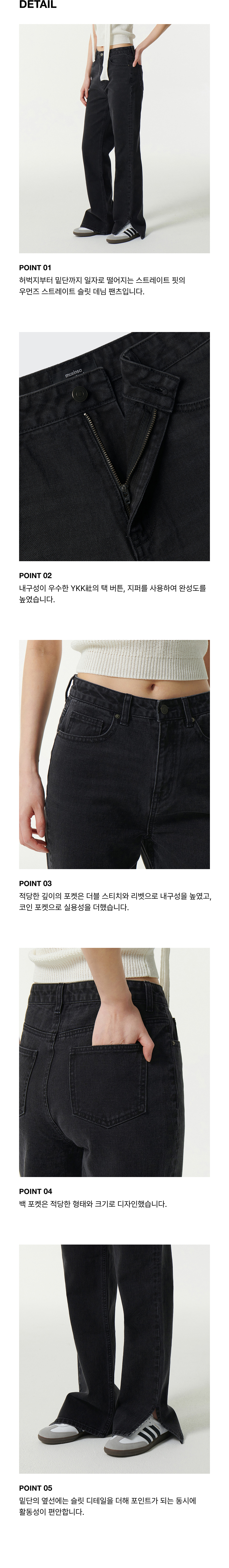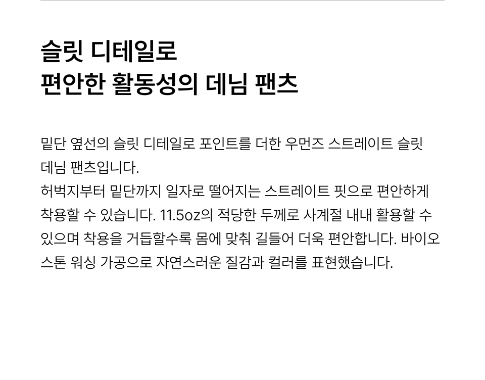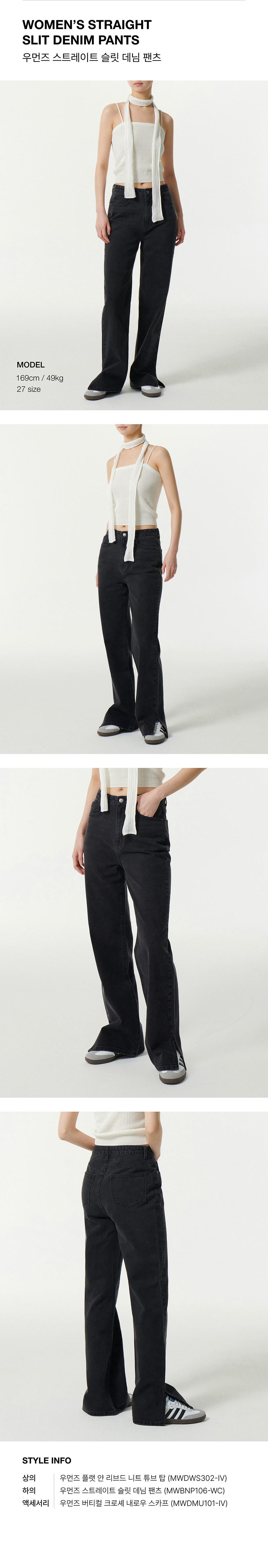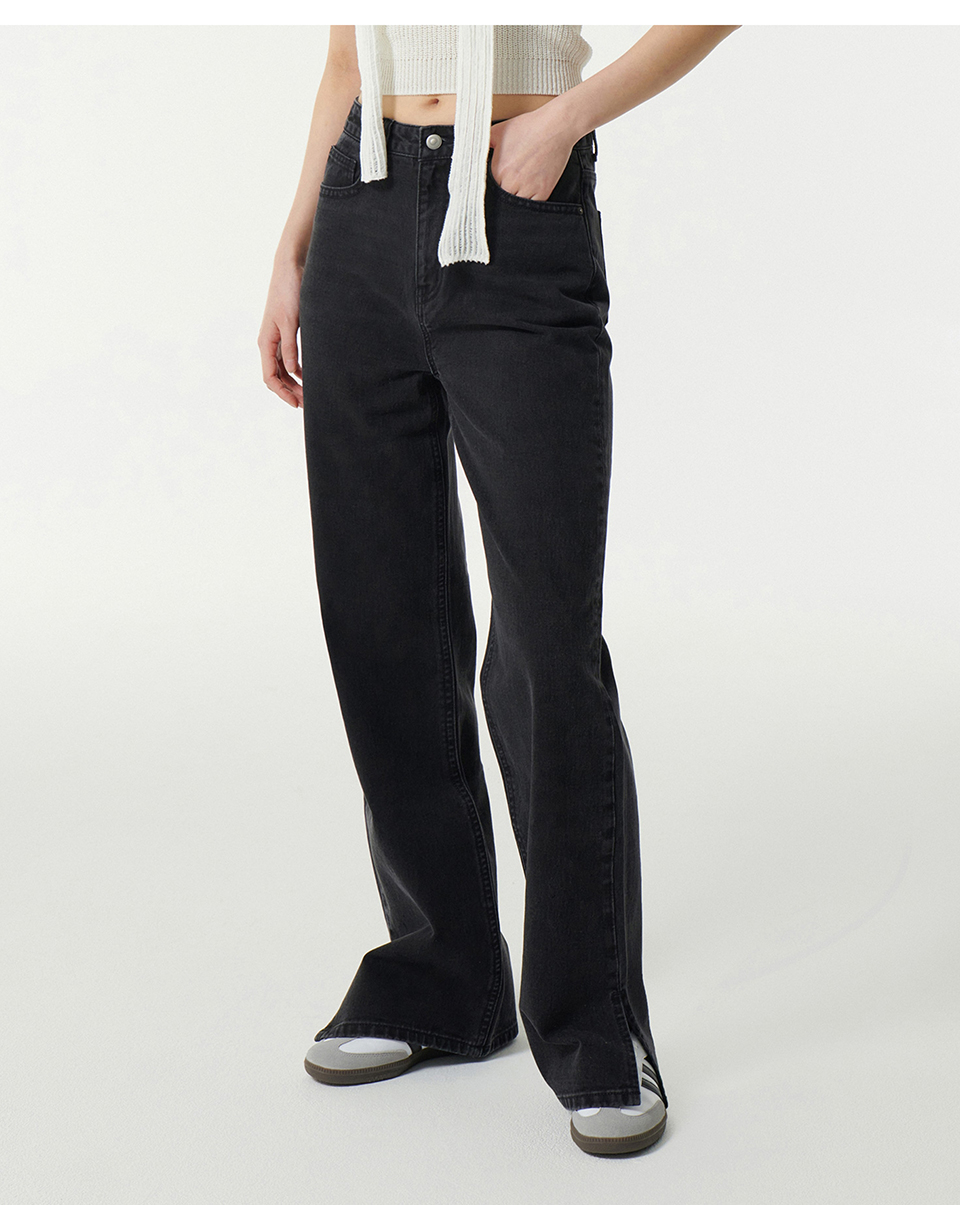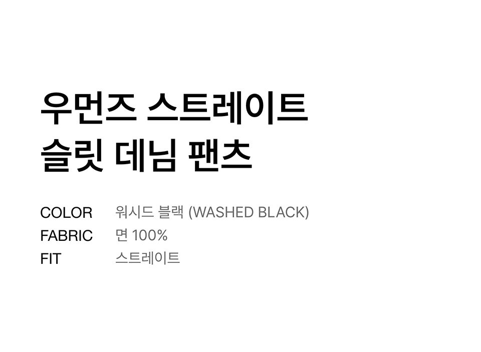 우먼즈 스트레이트 슬릿 데님 팬츠 [워시드 블랙]