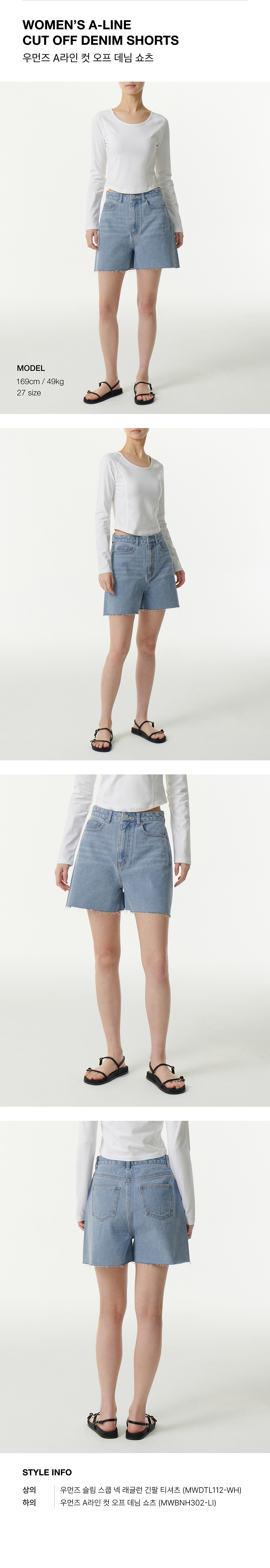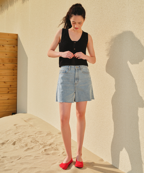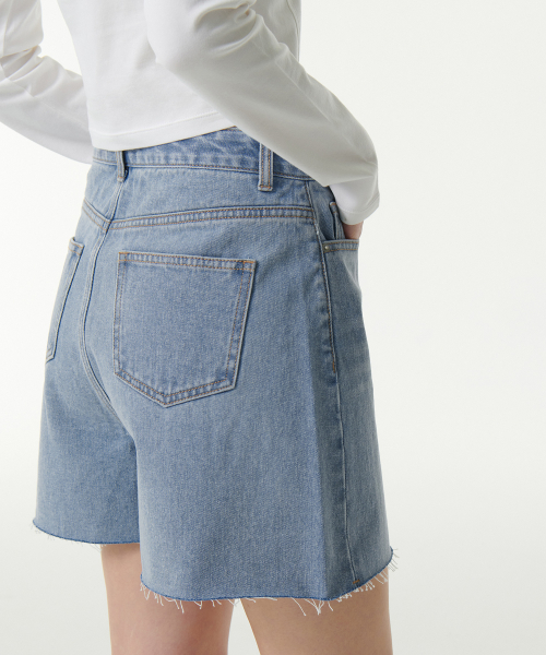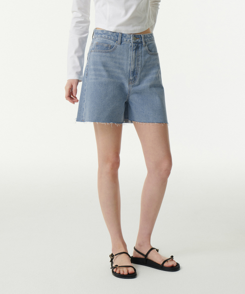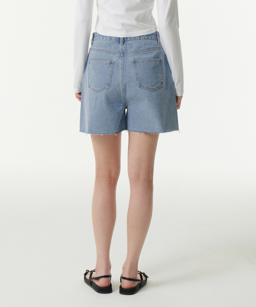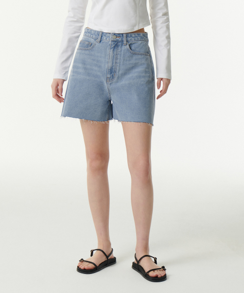 우먼즈 A라인 컷 오프 데님 쇼츠 [라이트 인디고]
