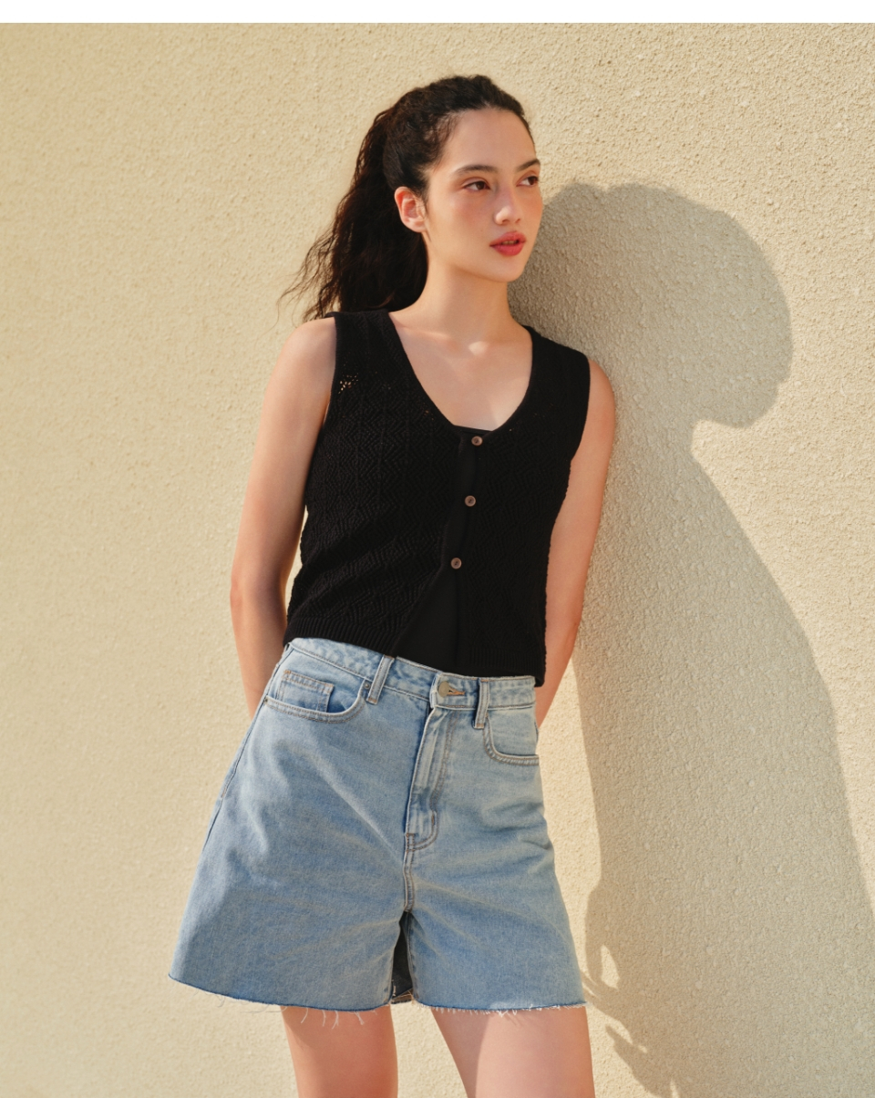 우먼즈 A라인 컷 오프 데님 쇼츠 [블랙]